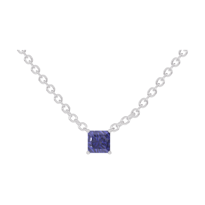 « L'ATELIER » Nº202051Collier Or blanc 18 carats - Saphir bleu Princesse 0.3 carat - Chaîne Forçat