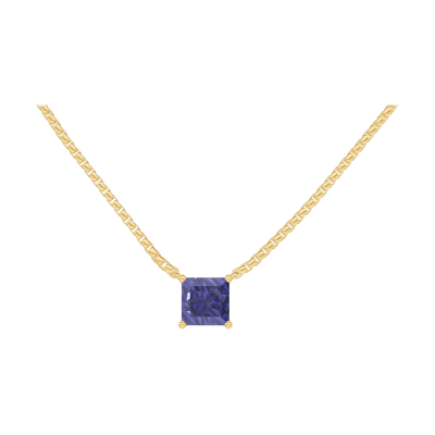 « L'ATELIER » Nº202053Collier Or jaune 18 carats - Saphir bleu Princesse 0.3 carat - Chaîne Vénitienne