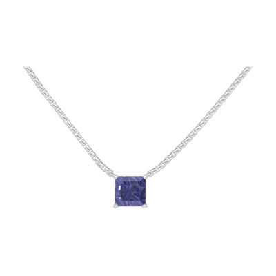 « L'ATELIER » Nº 202056Collier Or blanc 9 carats - Saphir bleu Princesse 0.3 carat - Chaîne Vénitienne