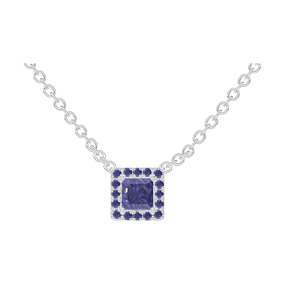 « L'ATELIER » Nº202075Collier Or blanc 18 carats - Saphir bleu Princesse 0.3 carat - Halo Saphir bleu - Chaîne Forçat