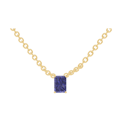 « L'ATELIER » Nº202081Collier Or jaune 18 carats - Saphir bleu Rectangle 0.3 carat - Chaîne Forçat