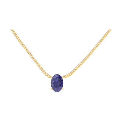 « L'ATELIER » Nº202118Collier Or jaune 9 carats - Saphir bleu Ovale 0.3 carat - Chaîne Vénitienne