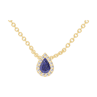 « L'ATELIER » Nº 202153Collier Or jaune 18 carats - Saphir bleu Poire 0.3 carat - Halo Diamant - Chaîne Forçat