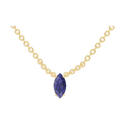 « L'ATELIER » Nº202178Collier Or jaune 9 carats - Saphir bleu Marquise 0.3 carat - Chaîne Forçat