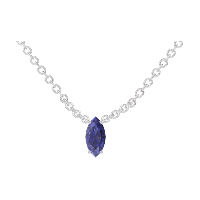 « L'ATELIER » Nº202179Collier Or blanc 18 carats - Saphir bleu Marquise 0.3 carat - Chaîne Forçat