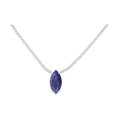 « L'ATELIER » Nº202184Collier Or blanc 9 carats - Saphir bleu Marquise 0.3 carat - Chaîne Vénitienne