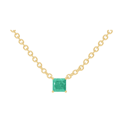 « L'ATELIER » Nº202241Collier Or jaune 18 carats - Émeraude Princesse 0.3 carat - Chaîne Forçat