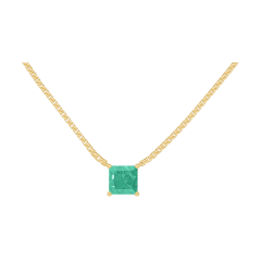 Collier Or jaune 18 carats - Émeraude Princesse 0.3 carat - Chaîne Vénitienne
