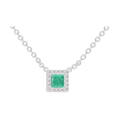 « L'ATELIER » Nº202252Collier Or blanc 9 carats - Émeraude Princesse 0.3 carat - Halo Diamant - Chaîne Forçat