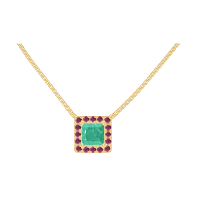 « L'ATELIER » Nº202262Collier Or jaune 9 carats - Émeraude Princesse 0.3 carat - Halo Rubis - Chaîne Vénitienne