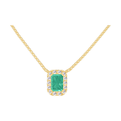 « L'ATELIER » Nº 202285Collier Or jaune 18 carats - Émeraude Rectangle 0.3 carat - Halo Diamant - Chaîne Vénitienne