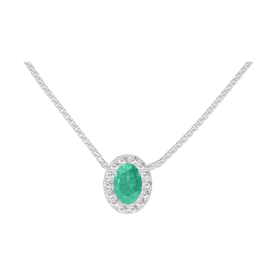 « L'ATELIER » Nº 202319Collier Or blanc 18 carats - Émeraude Ovale 0.3 carat - Halo Diamant - Chaîne Vénitienne