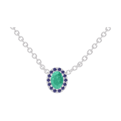 « L'ATELIER » Nº202331Collier Or blanc 18 carats - Émeraude Ovale 0.3 carat - Halo Saphir bleu - Chaîne Forçat