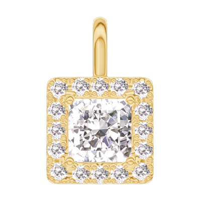 « L'ATELIER » Nº202642Pendentif Or jaune 9 carats - Diamant Princesse 0.3 carat - Halo Diamant - Pas de chaîne