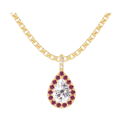« L'ATELIER » Nº203302Pendentif Or jaune 9 carats - Diamant Poire 0.3 carat - Halo Rubis - Sertissage Diamant - Chaîne Vénitienne