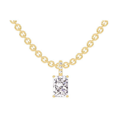 « L'ATELIER » Nº 203958Pendentif Or jaune 9 carats - Diamant synthétique Rectangle 0.3 carat - Sertissage Diamant synthétique - Chaîne Forçat