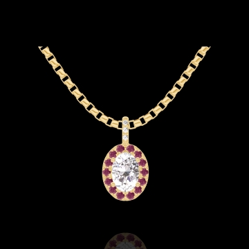 « L'ATELIER » Nº204262Pendentif Or jaune 9 carats - Diamant synthétique Ovale 0.3 carat - Halo Rubis - Sertissage Diamant synthétique - Chaîne Vénitienne