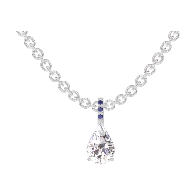 « L'ATELIER » Nº204352Pendentif Or blanc 9 carats - Diamant synthétique Poire 0.3 carat - Sertissage Saphir bleu - Chaîne Forçat 4.4 (12)