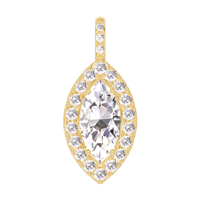 « L'ATELIER » Nº204566Pendentif Or jaune 9 carats - Diamant synthétique Marquise 0.3 carat - Halo Diamant synthétique - Sertissage Diamant synthétique - Pas de chaîne