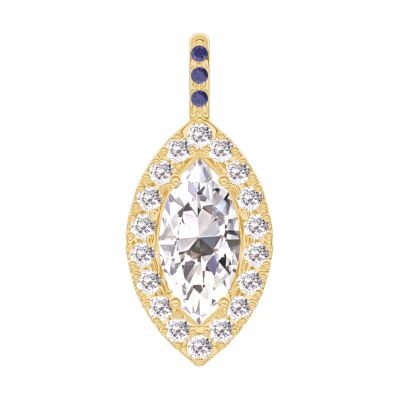 « L'ATELIER » Nº204574Pendentif Or jaune 9 carats - Diamant synthétique Marquise 0.3 carat - Halo Diamant synthétique - Sertissage Saphir bleu - Pas de chaîne