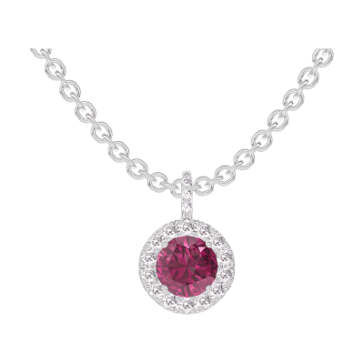 « L'ATELIER » Nº 204776Pendentif Or blanc 9 carats - Rubis Rond 0.3 carat - Halo Diamant - Sertissage Diamant - Chaîne Forçat 4 (3)