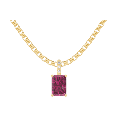 « L'ATELIER » Nº 205125Pendentif Or jaune 18 carats - Rubis Rectangle 0.3 carat - Sertissage Diamant - Chaîne Vénitienne