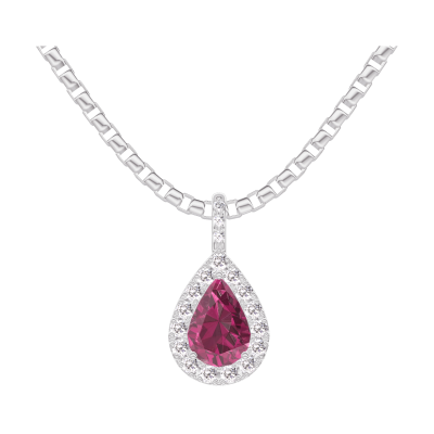 « L'ATELIER » Nº205559Pendentif Or blanc 18 carats - Rubis Poire 0.3 carat - Halo Diamant - Sertissage Diamant - Chaîne Vénitienne