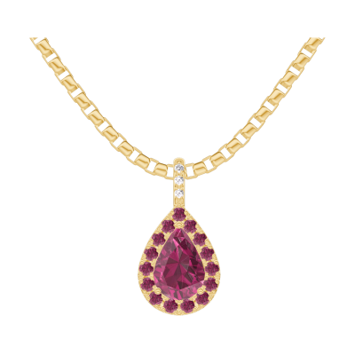 « L'ATELIER » Nº 205605Pendentif Or jaune 18 carats - Rubis Poire 0.3 carat - Halo Rubis - Sertissage Diamant - Chaîne Vénitienne