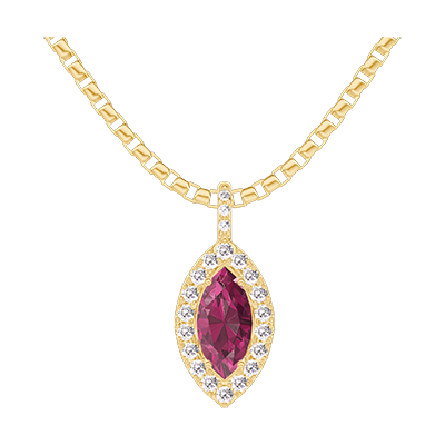 « L'ATELIER » Nº 205749Pendentif Or jaune 18 carats - Rubis Marquise 0.3 carat - Halo Diamant - Sertissage Diamant - Chaîne Vénitienne