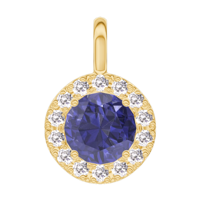 « L'ATELIER » Nº205906Pendentif Or jaune 9 carats - Saphir bleu Rond 0.3 carat - Halo Diamant - Pas de chaîne 4 (3)