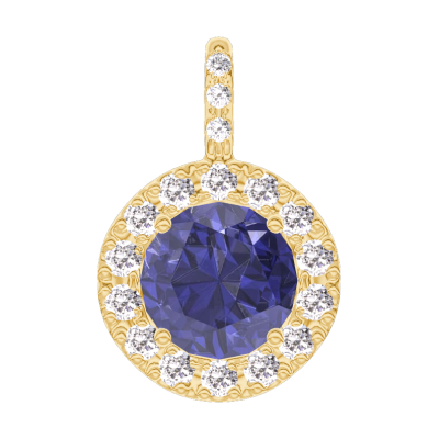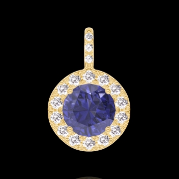 « L'ATELIER » Nº205910Pendentif Or jaune 9 carats - Saphir bleu Rond 0.3 carat - Halo Diamant - Sertissage Diamant - Pas de chaîne 4 (3)