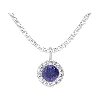 « L'ATELIER » Nº 205939Pendentif Or blanc 18 carats - Saphir bleu Rond 0.3 carat - Halo Diamant - Chaîne Vénitienne 4 (3)