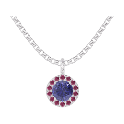 « L'ATELIER » Nº205992Pendentif Or blanc 9 carats - Saphir bleu Rond 0.3 carat - Halo Rubis - Sertissage Diamant - Chaîne Vénitienne 4 (3)