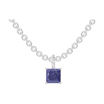 « L'ATELIER » Nº206072Pendentif Or blanc 9 carats - Saphir bleu Princesse 0.3 carat - Sertissage Diamant - Chaîne Forçat
