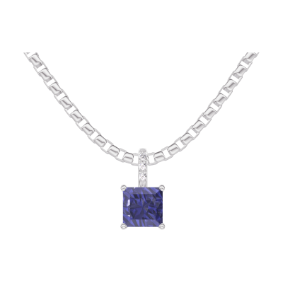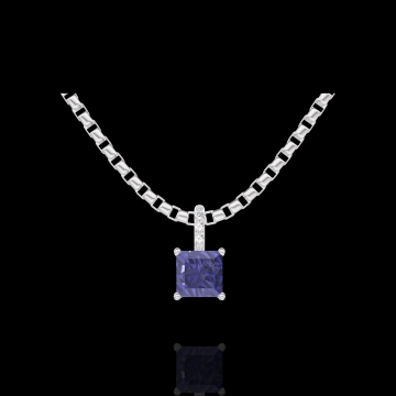« L'ATELIER » Nº206087Pendentif Or blanc 18 carats - Saphir bleu Princesse 0.3 carat - Sertissage Diamant - Chaîne Vénitienne