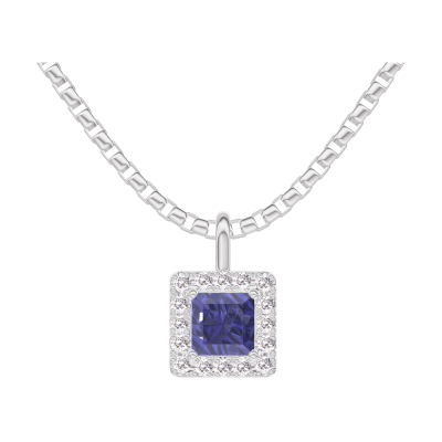 « L'ATELIER » Nº206131Pendentif Or blanc 18 carats - Saphir bleu Princesse 0.3 carat - Halo Diamant - Chaîne Vénitienne