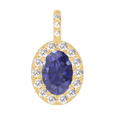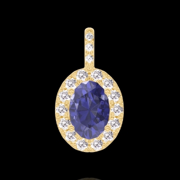 « L'ATELIER » Nº206485Pendentif Or jaune 18 carats - Saphir bleu Ovale 0.3 carat - Halo Diamant - Sertissage Diamant - Pas de chaîne