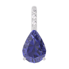 Pendentif Or blanc 18 carats - Saphir bleu Poire 0.3 carat - Sertissage Diamant - Pas de chaîne