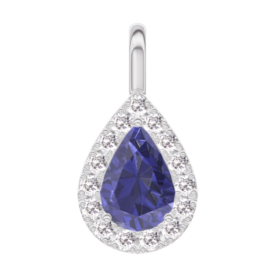 « L'ATELIER » Nº 206676Pendentif Or blanc 9 carats - Saphir bleu Poire 0.3 carat - Halo Diamant - Pas de chaîne