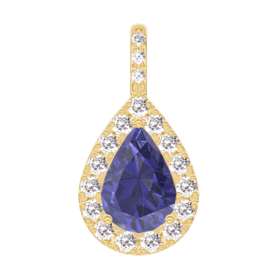 « L'ATELIER » Nº206677Pendentif Or jaune 18 carats - Saphir bleu Poire 0.3 carat - Halo Diamant - Sertissage Diamant - Pas de chaîne