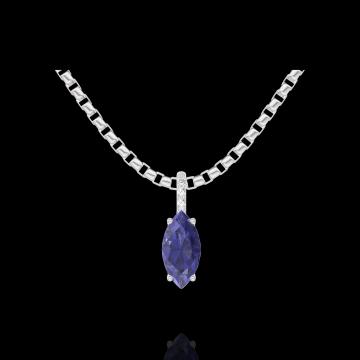 « L'ATELIER » Nº206855Pendentif Or blanc 18 carats - Saphir bleu Marquise 0.3 carat - Sertissage Diamant - Chaîne Vénitienne