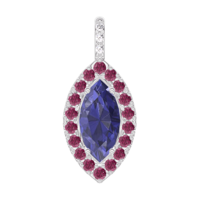 « L'ATELIER » Nº 206919Pendentif Or blanc 18 carats - Saphir bleu Marquise 0.3 carat - Halo Rubis - Sertissage Diamant - Pas de chaîne