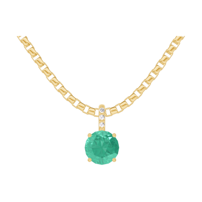 « L'ATELIER » Nº207045Pendentif Or jaune 18 carats - Émeraude Rond 0.3 carat - Sertissage Diamant - Chaîne Vénitienne 4.8 (8)