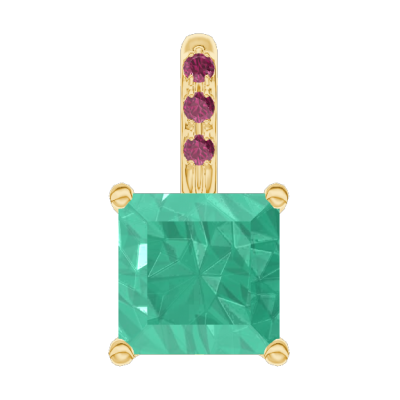 « L'ATELIER » Nº 207209Pendentif Or jaune 18 carats - Émeraude Princesse 0.3 carat - Sertissage Rubis - Pas de chaîne