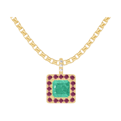 « L'ATELIER » Nº207333Pendentif Or jaune 18 carats - Émeraude Princesse 0.3 carat - Halo Rubis - Sertissage Diamant - Chaîne Vénitienne