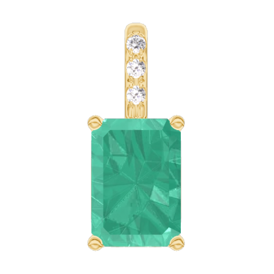 « L'ATELIER » Nº 207398Pendentif Or jaune 9 carats - Émeraude Rectangle 0.3 carat - Sertissage Diamant - Pas de chaîne