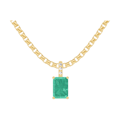 « L'ATELIER » Nº207430Pendentif Or jaune 9 carats - Émeraude Rectangle 0.3 carat - Sertissage Diamant - Chaîne Vénitienne