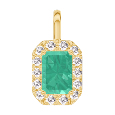 « L'ATELIER » Nº207441Pendentif Or jaune 18 carats - Émeraude Rectangle 0.3 carat - Halo Diamant - Pas de chaîne