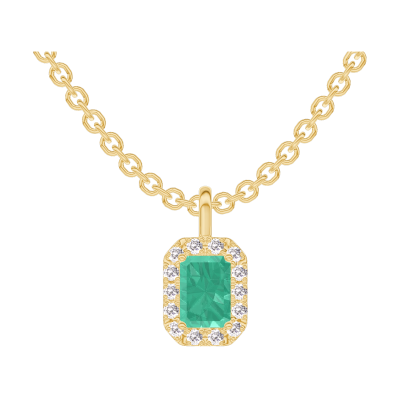 « L'ATELIER » Nº207458Pendentif Or jaune 9 carats - Émeraude Rectangle 0.3 carat - Halo Diamant - Chaîne Forçat