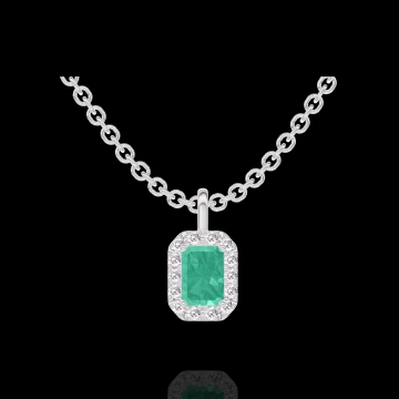 « L'ATELIER » Nº207460Pendentif Or blanc 9 carats - Émeraude Rectangle 0.3 carat - Halo Diamant - Chaîne Forçat